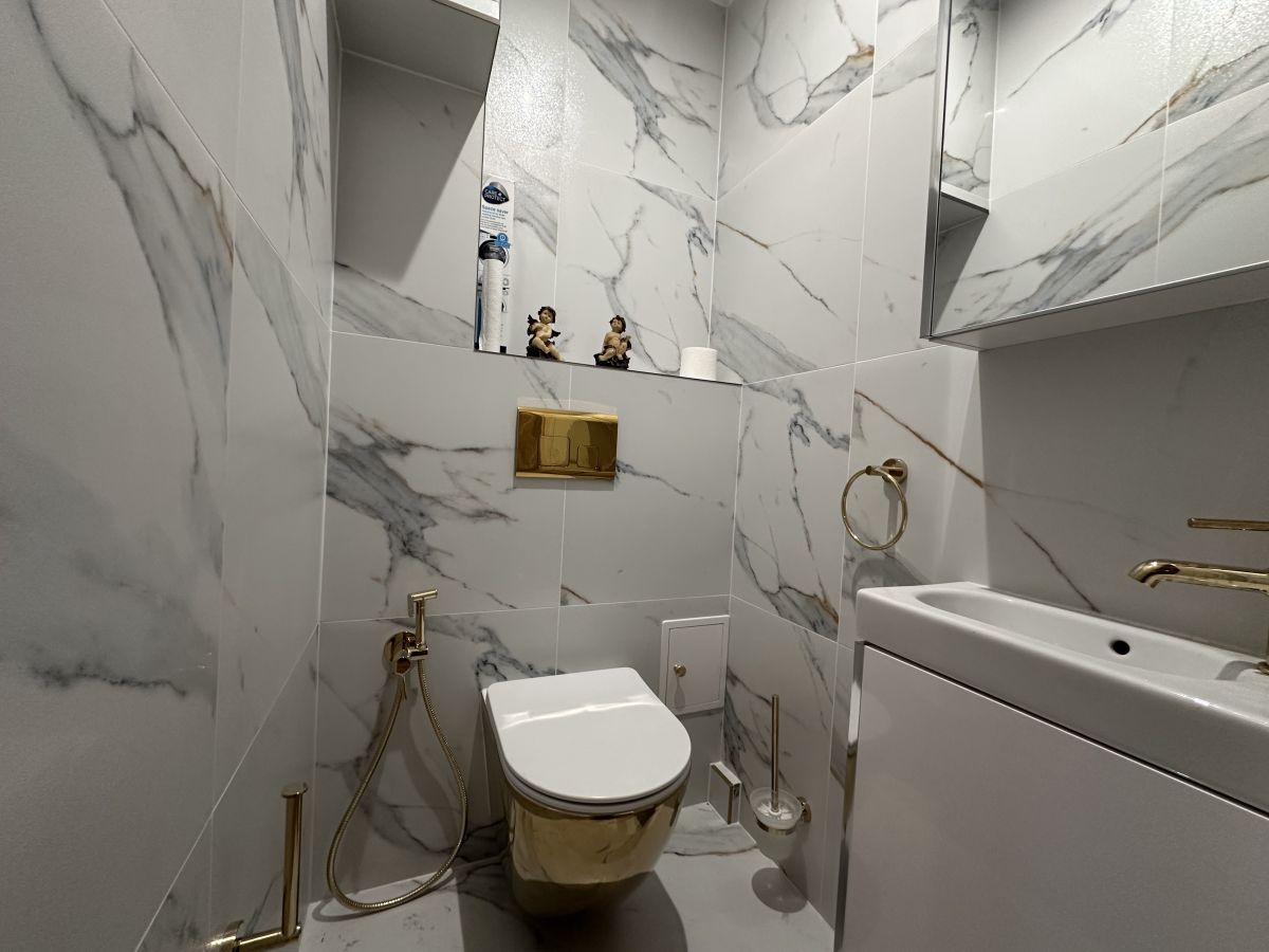 Kuchnia umeblowana i wyposażona. Łazienka i toaleta gustownie urządzone.
