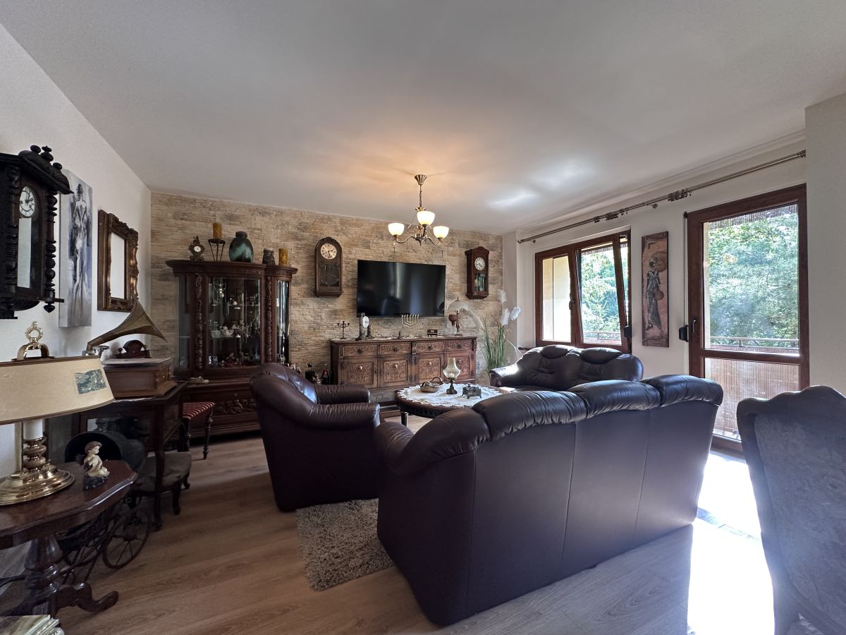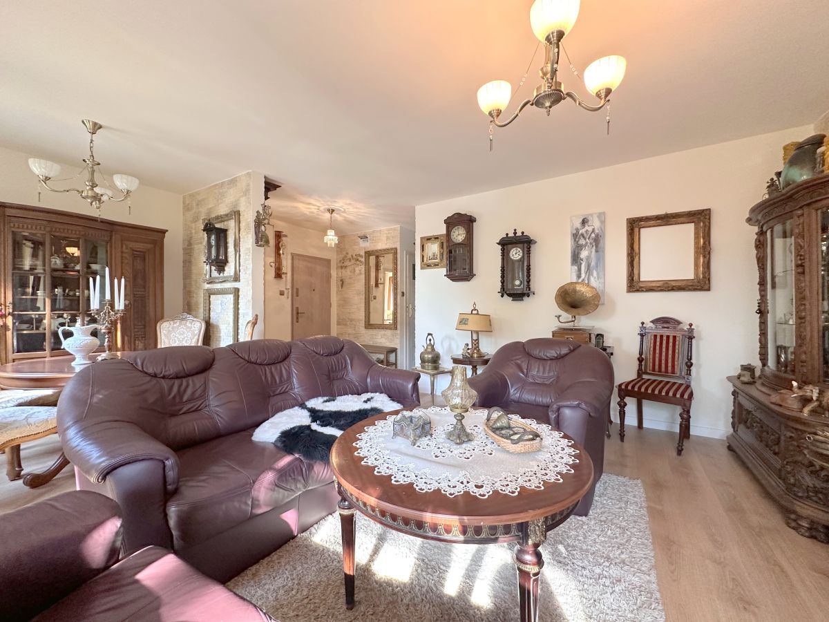 Salon z wyjściem na słoneczny balkon