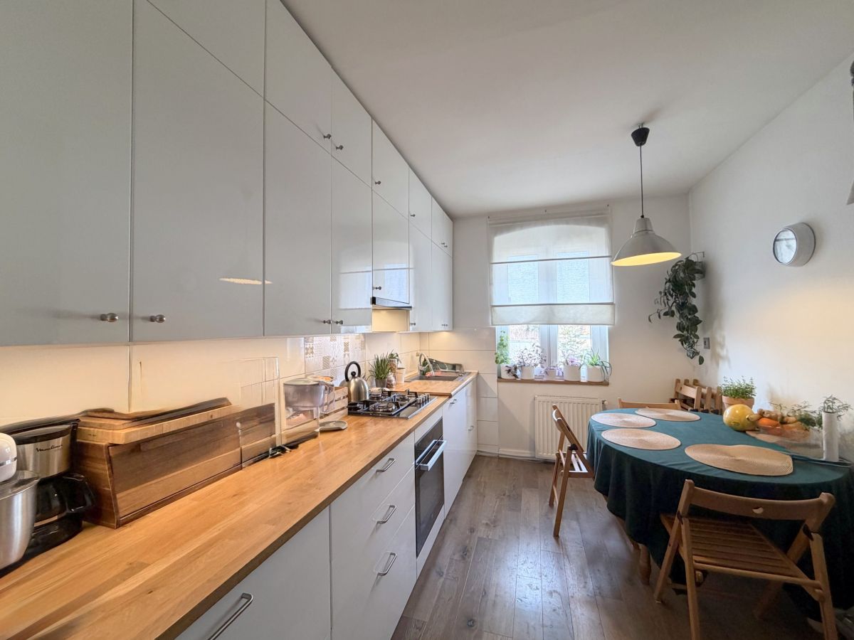 Mieszkanie jest dwustronne, słoneczne i bardzo ciepłe, co przekłada się na komfort oraz niskie koszty ogrzewania. Wnętrza zachwycają odrestaurowanymi, drewnianymi drzwiami oraz naturalnymi podłogami. Ściany wykończone gładzią, w łazience elegancki gres.