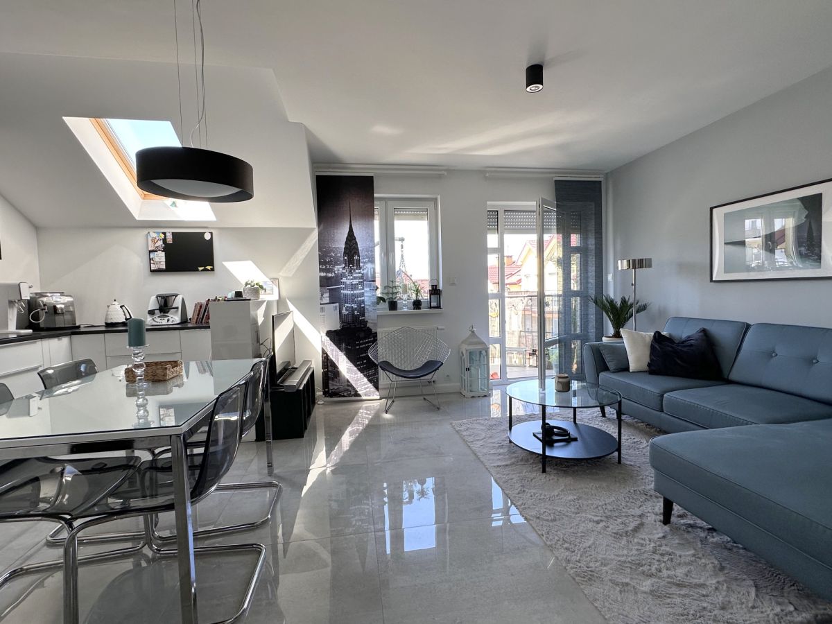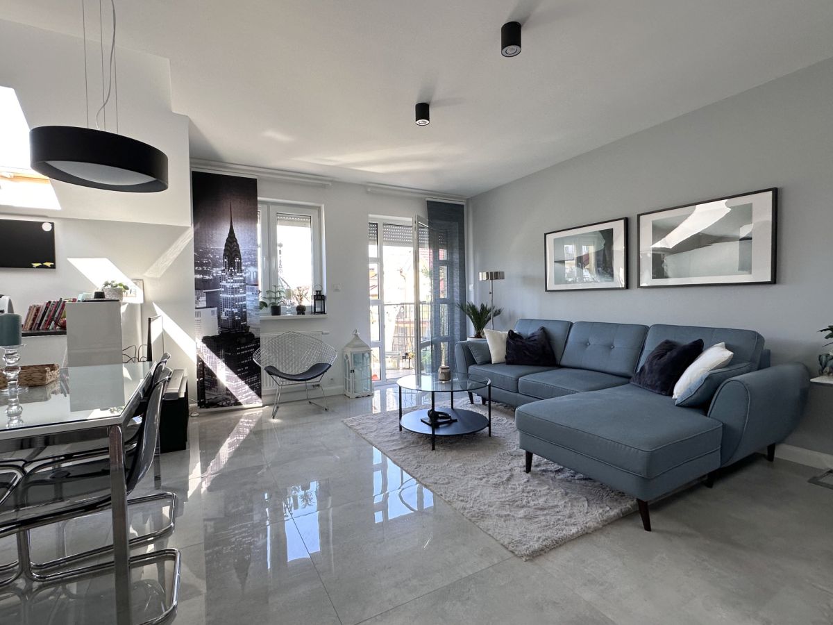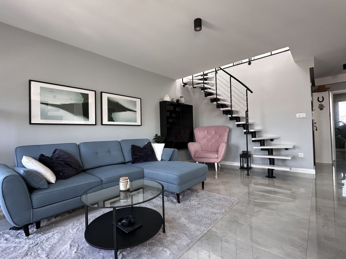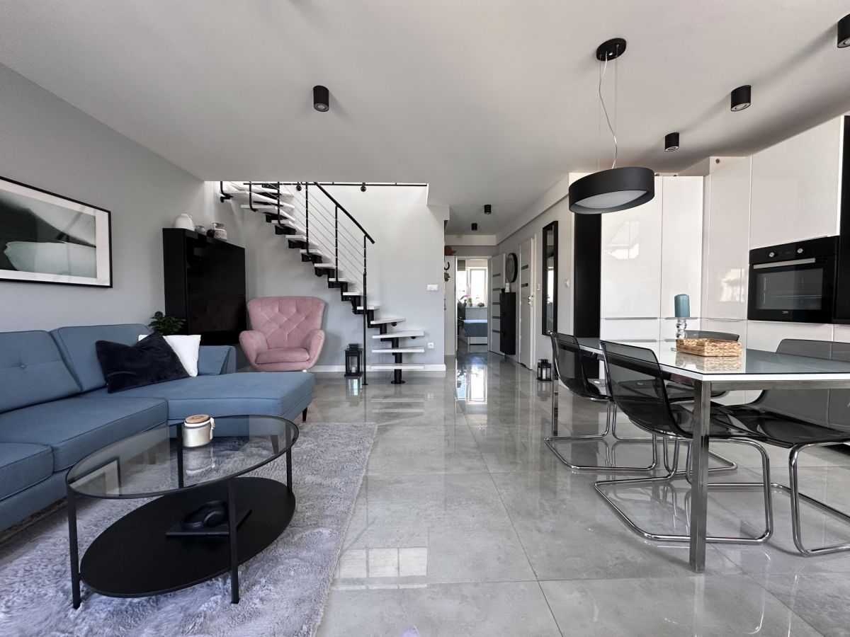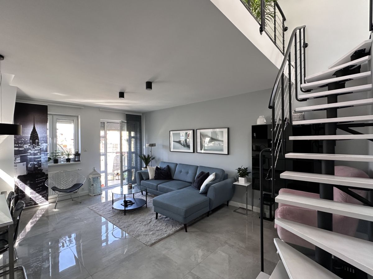 Eleganckie 2-poziomowe mieszkanie, o powierzchni całkowitej 120 m² (po podłodze) znajduje się na trzecim piętrze w kameralnym trzypiętrowym budynku. Przy wykończeniu mieszkania zastosowano wysokiej jakości materiały oraz meble bardzo dobrej klasy. Mieszkanie charakteryzuje się niezwykle funkcjonalnym układem, jest bardzo jasne,ciepłe i przestronne.
