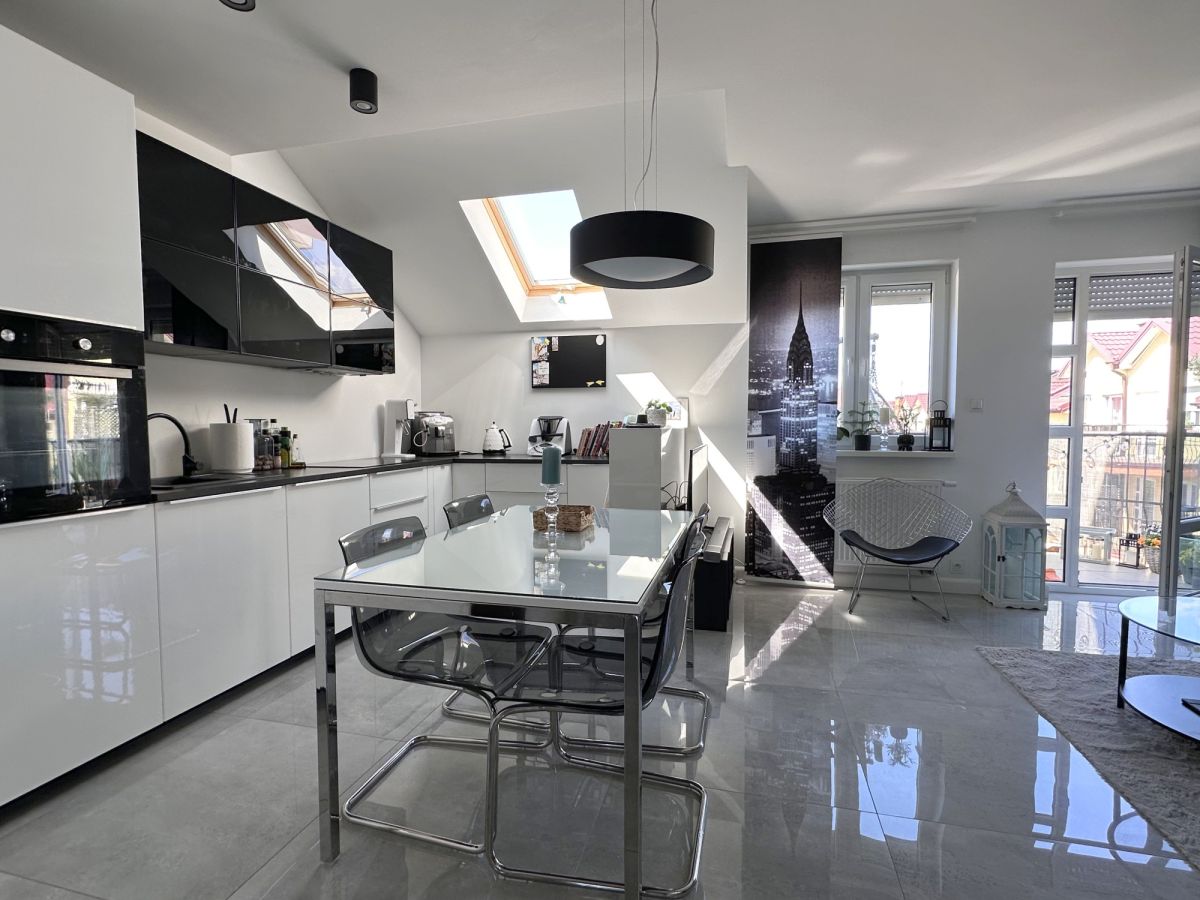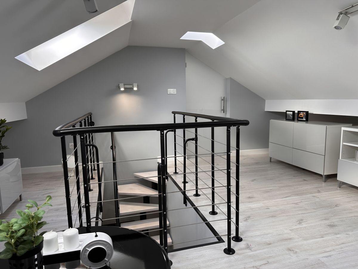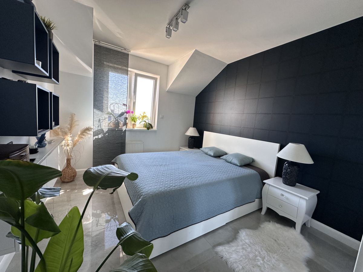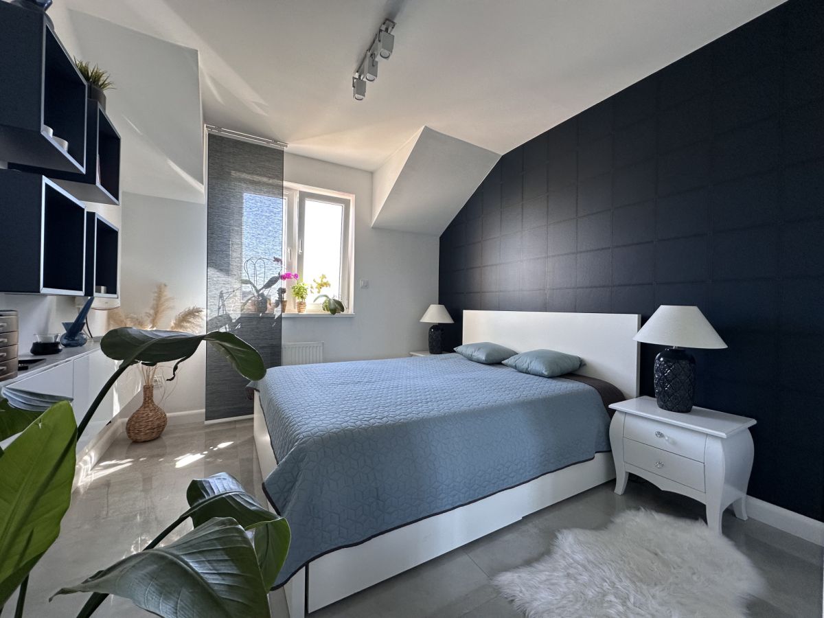 Eleganckie 2-poziomowe mieszkanie, o powierzchni całkowitej 120 m² (po podłodze) znajduje się na trzecim piętrze w kameralnym trzypiętrowym budynku. Przy wykończeniu mieszkania zastosowano wysokiej jakości materiały oraz meble bardzo dobrej klasy. Mieszkanie charakteryzuje się niezwykle funkcjonalnym układem, jest bardzo jasne,ciepłe i przestronne.