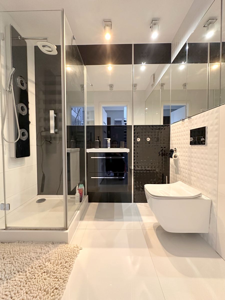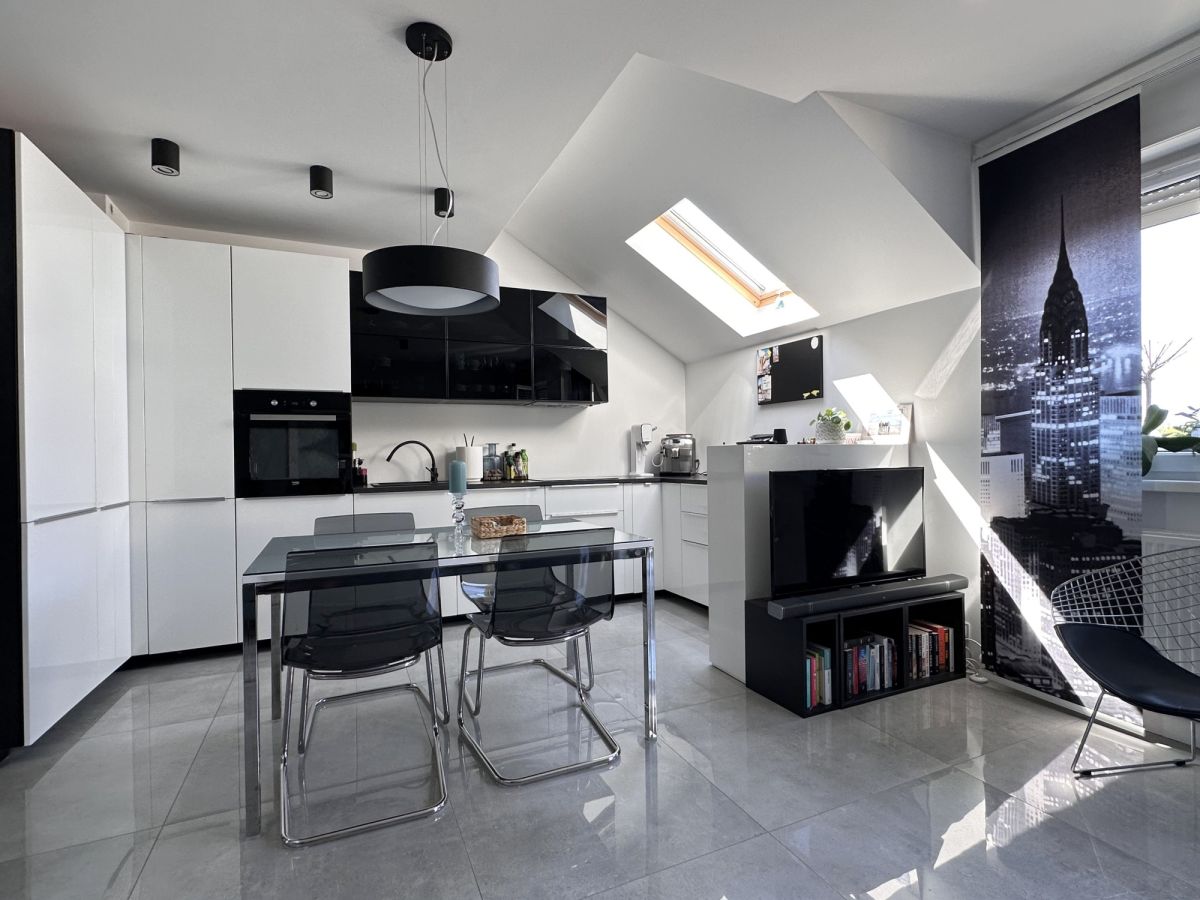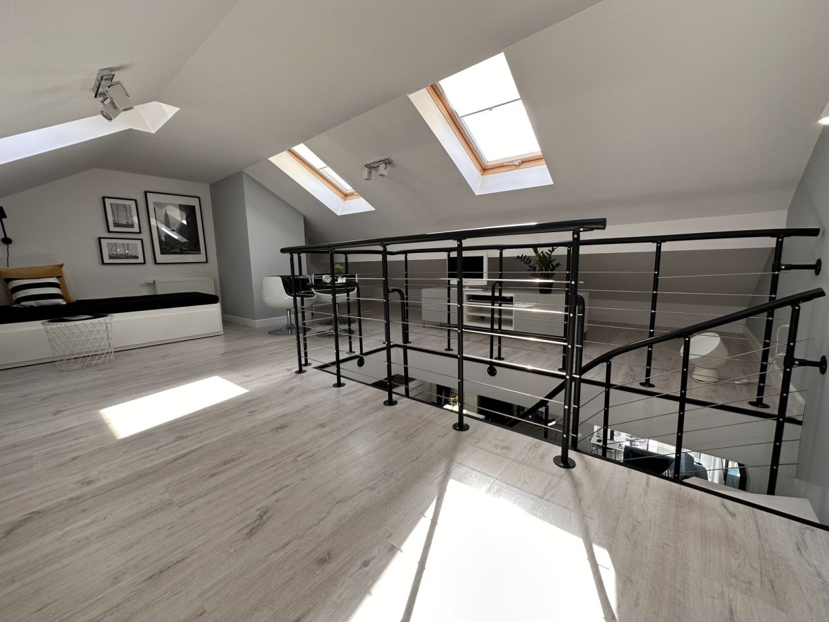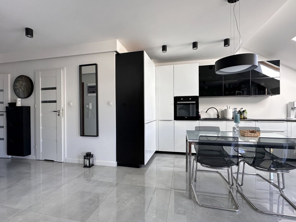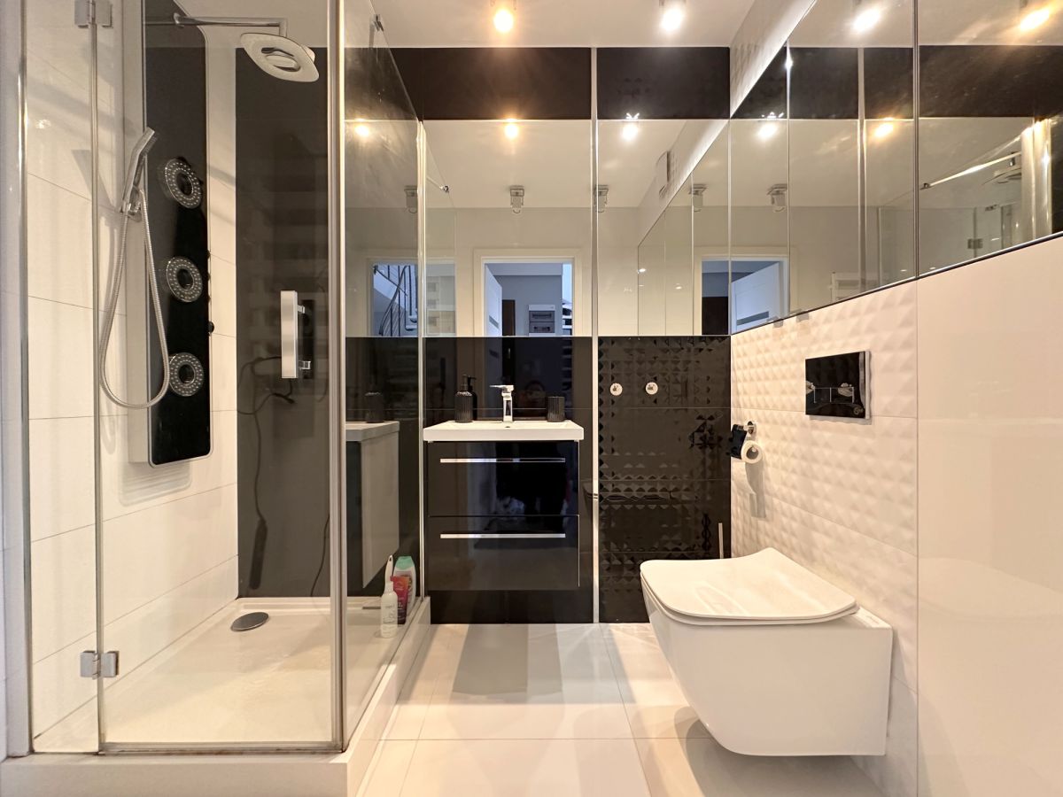 Eleganckie 2-poziomowe mieszkanie, o powierzchni całkowitej 120 m² (po podłodze) znajduje się na trzecim piętrze w kameralnym trzypiętrowym budynku. Przy wykończeniu mieszkania zastosowano wysokiej jakości materiały oraz meble bardzo dobrej klasy. Mieszkanie charakteryzuje się niezwykle funkcjonalnym układem, jest bardzo jasne,ciepłe i przestronne.