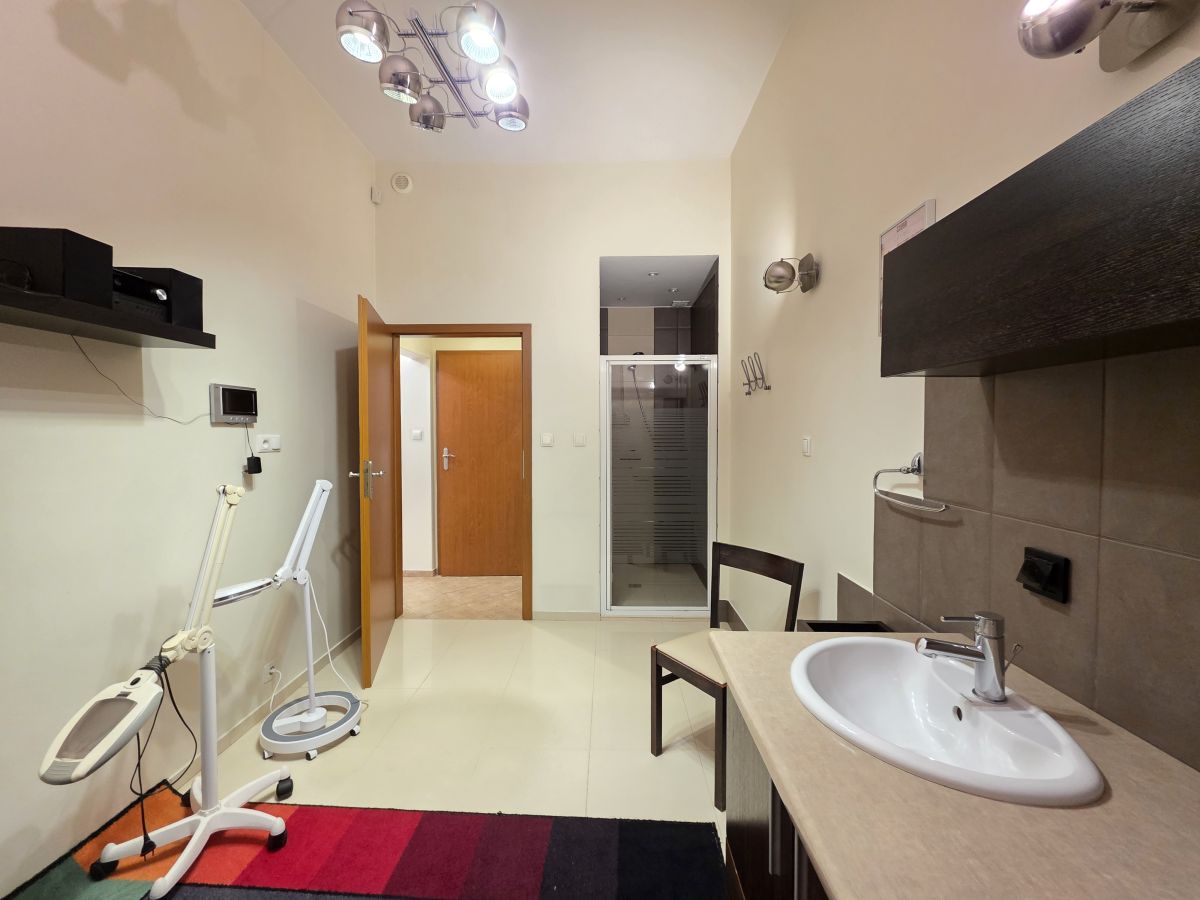 Lokal składa się z kilku funkcjonalnych pomieszczeń, które umożliwiają komfortową pracę indywidualną lub w małych zespołach. Jest dwustronny, bardzo zadbany i utrzymany w wysokim standardzie. Układ pomieszczeń pozwala na łatwe dostosowanie przestrzeni do różnego rodzaju działalności, w tym gabinetu medycznego, kancelarii prawnej, biura czy pracowni usługowej. Dzięki swojemu układowi i estetycznemu wykończeniu lokal zapewnia wygodne warunki pracy oraz profesjonalny wizerunek dla przyszłych użytkowników.