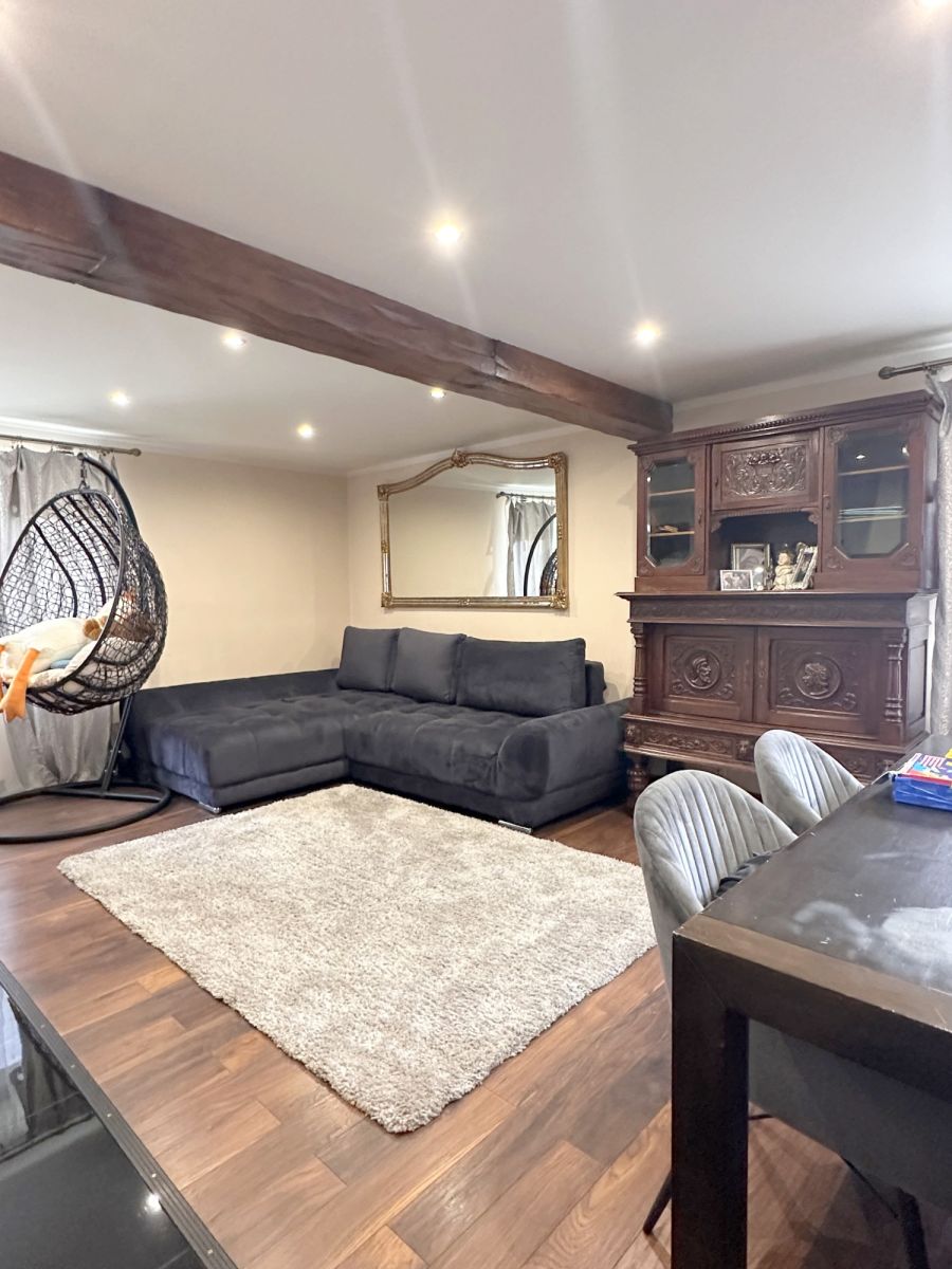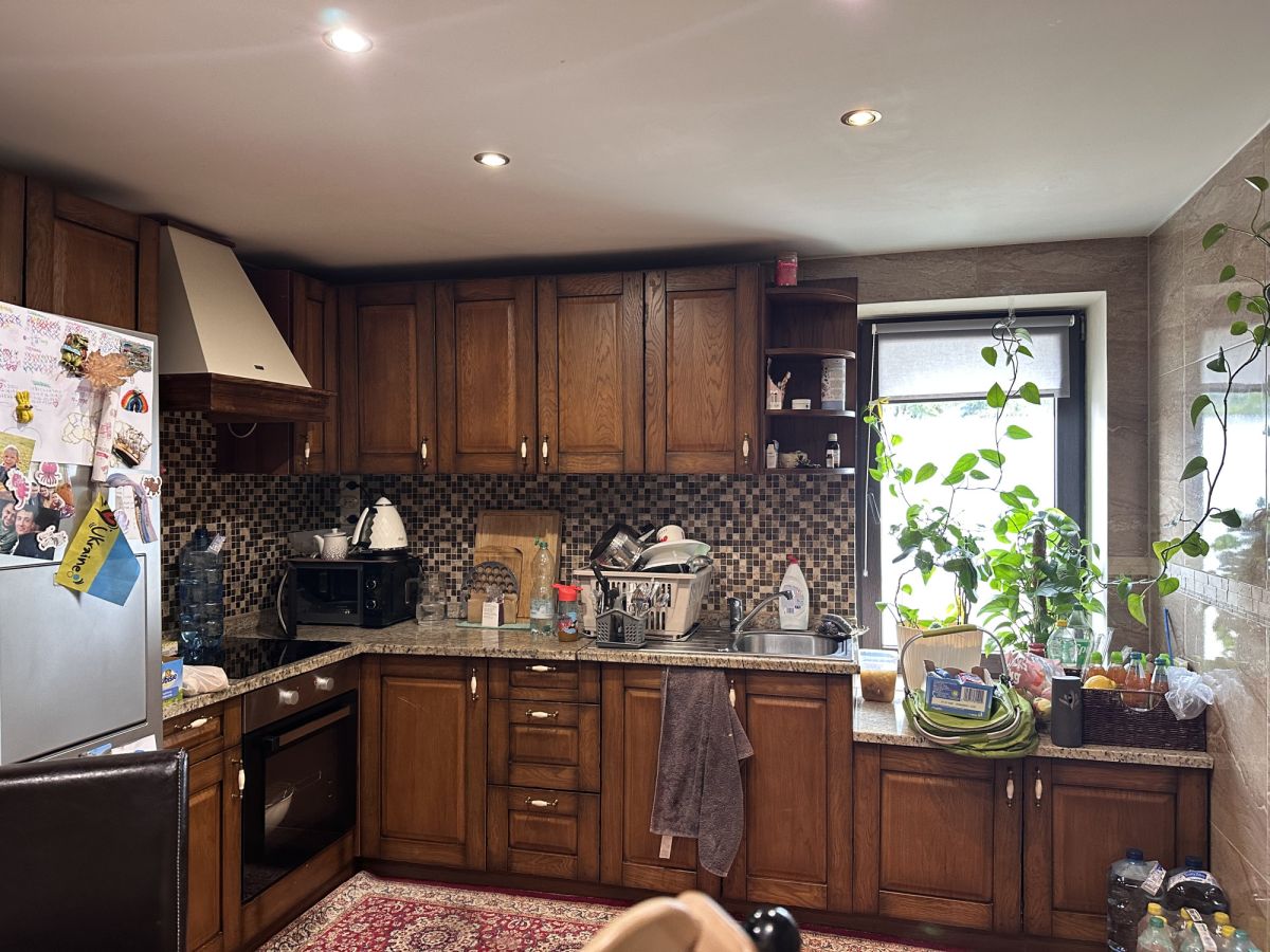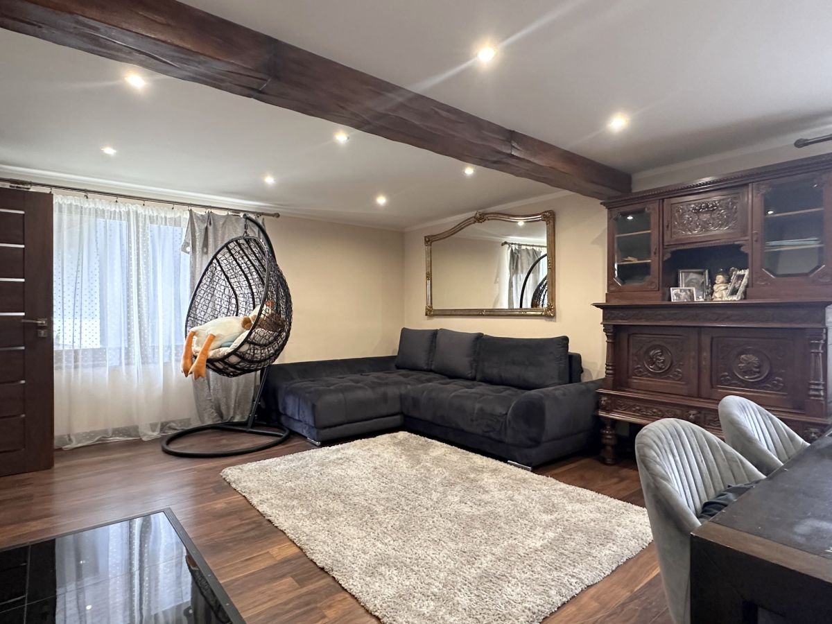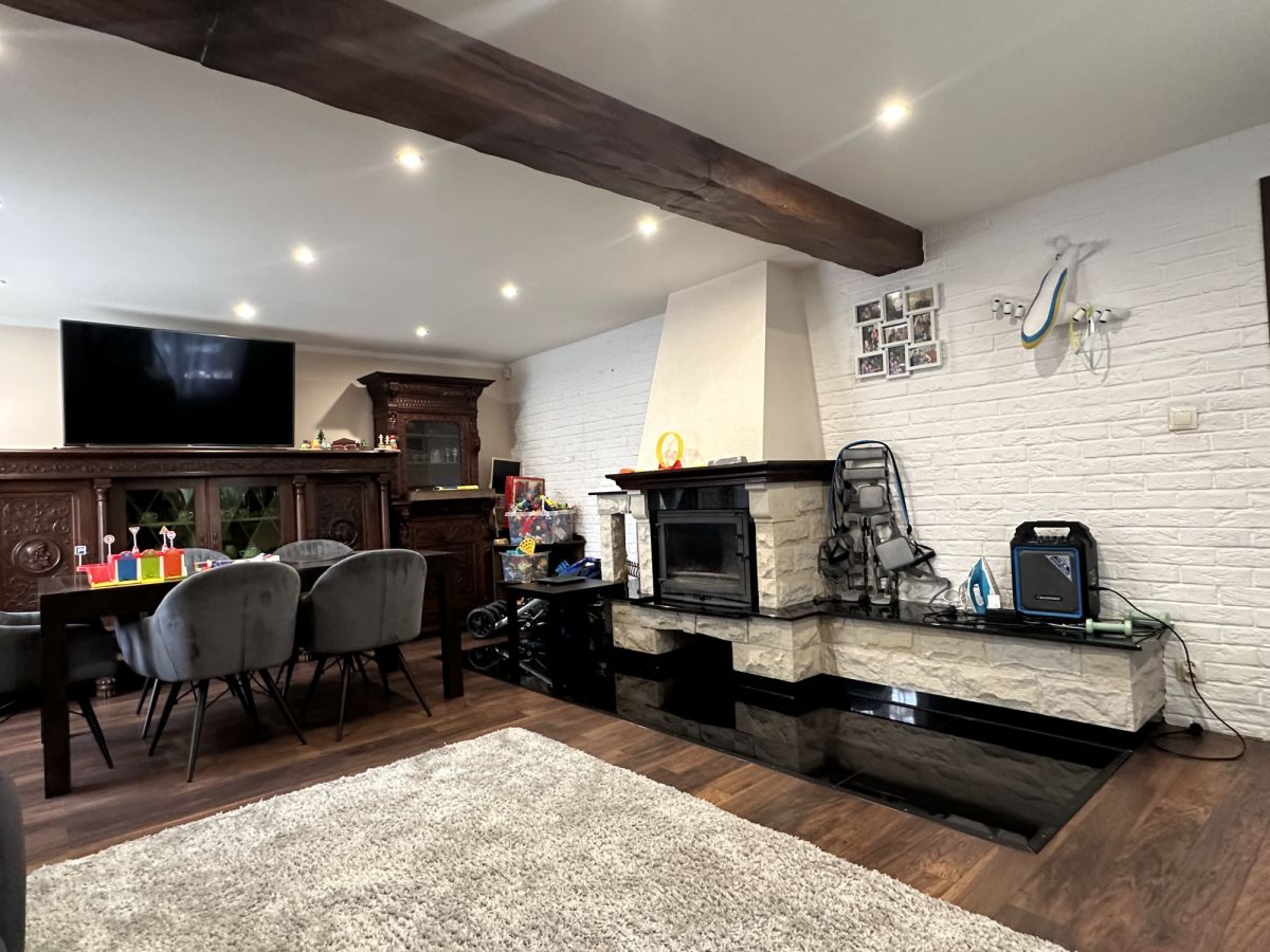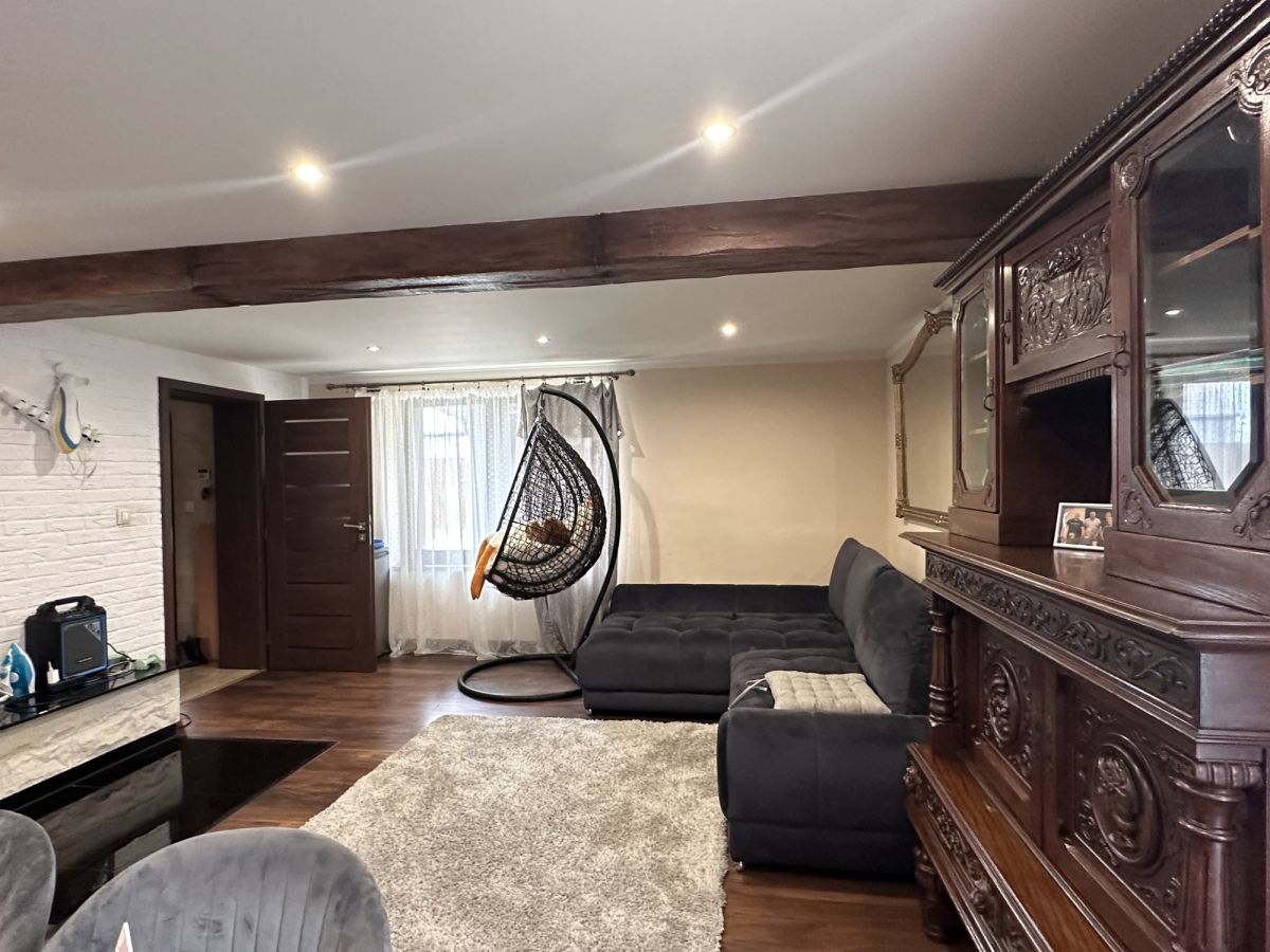 Piękny salon z kominkiem. Kuchnia w pełni umeblowana i wyposażona w sprzęt AGD.