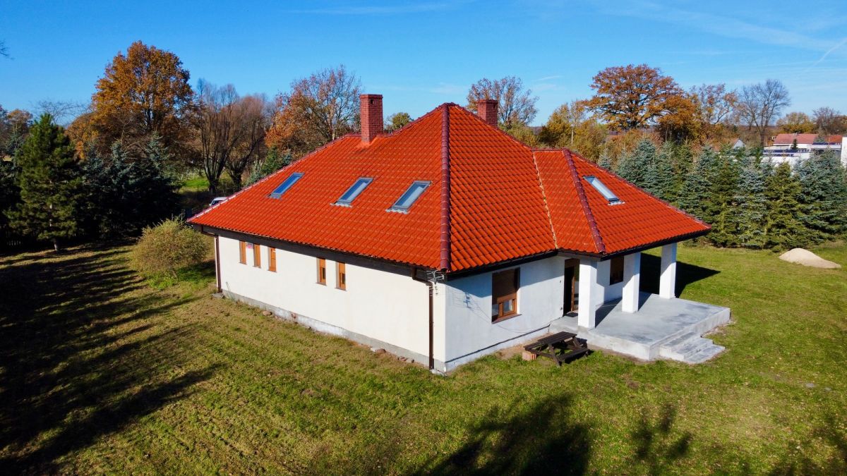 Dom murowany parterowy, niepodpiwniczony z poddaszem użytkowym. W skład nieruchomości wchodzą: