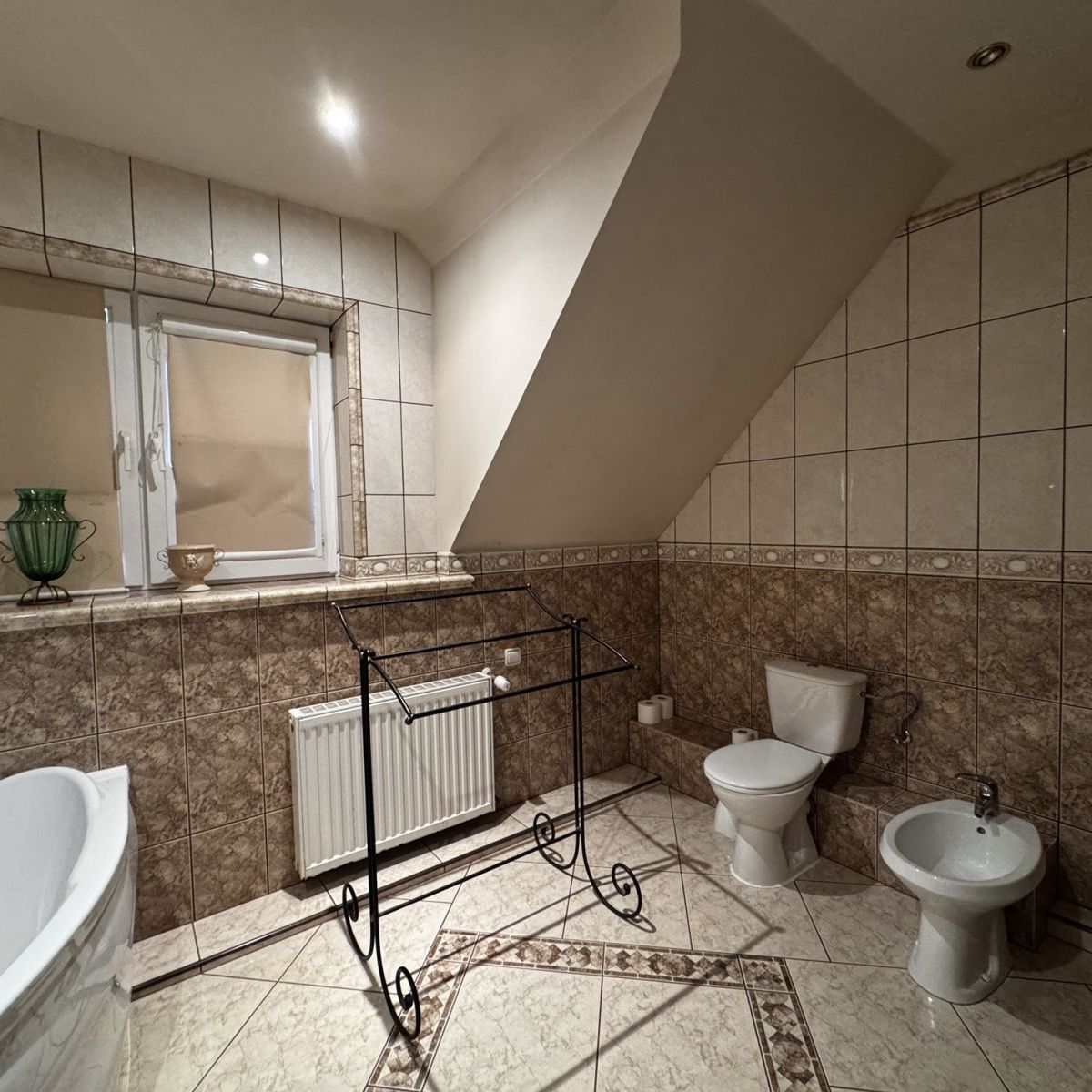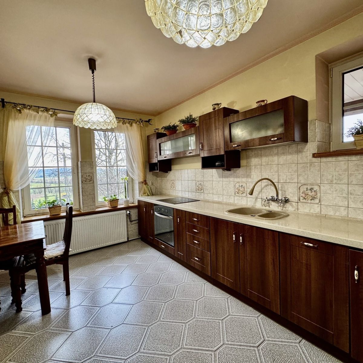 Drugi budynek to dom o powierzchni ok. 65 m² – 2 pokoje, osobna kuchnia, łazienka, pełne podpiwniczenie oraz garaż. Idealny jako dom gościnny, pod wynajem lub dla członka rodziny.